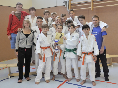 In diesem Jahr hatte man sich überlegt, die Kräfte zweier Münsteraner Judovereine zu bündeln und eine Kampfgemeinschaft JG Münster/TSC Münster-Gievenbeck ins Rennen zu schicken. Bei der Bezirksmannschaftsmeisterschaft der U15 am 17. September in Hörstel konnte so das Jungenteam souverän alle weiteren Mannschaften hinter sich lassen und sicherte sich ungefährdet den Titel. Zunächst ging es gegen den JC Greven. Ein guter Auftakt für die Münsteraner, denn man verließ die Matte mit einem deutlichen 8:0 (Unterbewertung 80:0). Dann stand man der KG Ibbenbüren/Ochtrup gegenüber. Hier hieß es am Ende 7:1 (65:10) für Münster. Stella Bevergern war der dritte Gegner an diesem Samstag. Auch hier waren die JG-TSCler klar durch ein 7:1 (67:1) vorne. Die letzte Begegnung verlief ein wenig ausgeglichener. Dennoch verpasste man dem Dattelner JC ein 5:2 (50:11). So hat man die Qualifikation zur Westdeutschen Meisterschaft geschafft und wird am 1. Oktober nach Mönchengladbach reisen, um dort um eine vordere Platzierung mitzukämpfen.