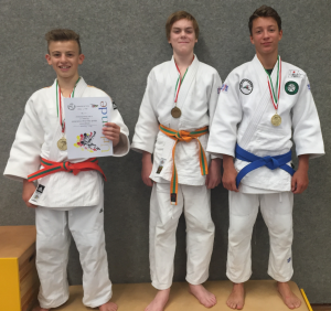 Bei einem Westfalen-Turnier in Herne am 29.August, auf dem U14-Judoka der Sportbezirke Arnsberg, Detmold und Münster antraten, konnten sich die Kämpfer der JG Münster hervorragend präsentieren. Auf dem traditionellen Kyu-Cup wurde in Gürtelklassen eingeteilt. In der ersten Gruppe kämpften die Kyu-Grade 7 bis 5 (gelb bis orange), in Gruppe II traten alle höheren Gurte an. Lamido Sow (Stammverein PSV) belegte in der ersten Gruppe in der Klasse bis 60 kg Rang Eins. Bei den Fortgeschrittenen gab es gleich dreimal Gold: Nick Woschow (-34kg/TuS Hiltrup) kletterte nach fünf Siegen mit Höchstwertung auf den obersten Podestplatz. Sein Vereinskollege Marc Fugmann (-46kg) besiegte vier Gegner, bevor er auf Platz Eins landete; ebenso Finn Krämer (PSV), der in der Klasse bis 55 kg einen Durchmarsch machte. In dieser Kategorie belegte Marius Martin den dritten Platz. Juliana Schulte (-48kg/beide TV Friesen Telgte) wurde Fünfte.