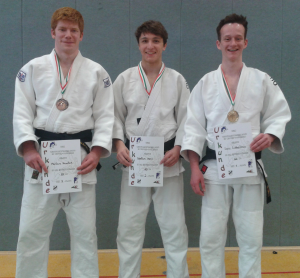 Am Samstagnachmittag ging es in Witten mit den Männern weiter. Von vier Kämpfern der JG Münster gingen drei mit Edelmetall nach Hause. Allen voran konnte sich Lars Liebetrau (Stammverein TuS Hiltrup) in der Klasse bis 66 kg einen Treppchenplatz erkämpfen. Nach drei Siegen stand er im Finale. Dieses allerdings gestaltete sich mehr als spannend. Beiden Kämpfern gelang keine Wertung in der regulären Kampfzeit. Allerdings sammelten beide auch die gleiche Anzahl an Strafen. In der Verlängerung, die seit dem neuesten Reglement nicht mehr zeitlich begrenzt ist, erhielt Liebetraus Gegner dann einen weiteren Shido, so dass der Münsteraner nach mehr als 10 Minuten (!) als Sieger die Matte verließ. Den zweiten Platz belegte Stefan Herz (-60kg/TV Borghorst), Markus Kracke (-81kg) wurde Dritter. Beide mussten lediglich eine Niederlage hinnehmen.