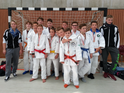Am 12. September fand die U15-Mannschaftsmeisterschaftsserie auf der "Westdeutschen" in Leverkusen ihre Fortsetzung. Als Bezirksmeister waren die Jungen der JG Münster angereist, leider mit zwei fehlenden Gewichtsklassen. Da ein Kämpfer verletzt war, wurde also ein Punkt immer abgegeben. Durch Hochsetzen konnte man die zweite fehlende Klasse nicht immer kompensieren. Um so mehr freute man sich über das erzielte Ergebnis. Zwar konnte man den Vizetitel von 2014 nicht verteidigen, gelangte aber im dritten Jahr in Folge auf das Treppchen und bewies eine kontinuierliche Leistung. Mit dem Bronzerang unter 16 Teams trotz dieser schlechten Vorzeichen konnte man mehr als zufrieden sein. Zunächst musste man gegen die Kampfgemeinschaft Essen/Kempen. Hier wurde ein klares 6:2 erzielt. Die nächste Begegnung gegen den TV Hoffnungsthal brachte man ebenso deutlich mit 6:1 nach Hause. Im Halbfinale traf man auf den JC Hennef. Dem späteren Meister war man nur ganz knapp unterlegen. Am Ende hieß es 4:4, aber mit der besseren Unterbewertung (35:27) für den Gegner. In der Trostrunde hatte man dann noch die Chance auf den dritten Platz. Im kleinen Finale stand den Münsteranern der SSF Bonn gegenüber. Die JG-Trainerin Svenja Reißberg hatte ihr Team taktisch gut aufgestellt. Mit einem 5:3 fanden letztendlich die Westdeutschen Mannschaftsmeisterschaften für die JG-Jungen doch noch einen hervorragenden Ausklang, der lautstark bejubelt wurde.