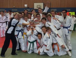 Die Mädchenmannschaft, die im Anschluss an den Start ging, hat sich ordentlich präsentiert. Das noch junge Team, was vor Wochenfrist Bezirksmeister wurde, verlor die erste Begegnung knapp mit 3:4 gegen den JC Hennef. In der Trostrunde gelang ein 4:3-Sieg gegen Sakura Herzogenrath, bevor eine erneute Niederlage (2:5) gegen den Velberter JC das endgültige Aus bedeutete.