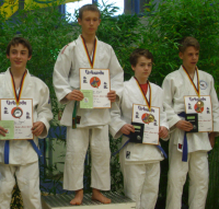 Am Wochenende des 19. und 20. Oktober fand in Bonn ein internationales Turnier für die U14, die U17 und die U20 statt. Die Teilnehmer kamen aus dem gesamten Bundesgebiet, wie auch aus Großbritannien, Belgien und den Niederlanden. Auch die JG Münster hatte einige Kämpfer am Start. Am Samstag begann die U17. Hier gewann Tino Godehardt (Stammverein BW Ottmarsbocholt) in der Gewichtsklasse bis 43 kg die Bronzemedaille. Jan Bergmann (-55kg/TSC Münster-Gievenbeck) konnte nach vier Siegen bei zwei Niederlagen in einem 27-Mann starken Feld als jüngster Jahrgang einen beachtenswerten siebten Rang belegen. Ebenso Siebter wurde Benedikt Feldhaus (BWO) in der Kategorie bis 50 kg. Am späten Nachmittag holte dann in der U20 Stefan Herz (TV Borghorst) in der Klasse bis 60 kg den dritten Platz. Darius Beike (-73kg/Gievenbeck) wurde Siebter. Sonntag dann fanden die Bonn Open ihre Fortsetzung für die U14. Auch hier hatte die JG Münster einige Eisen im Feuer und kehrte ebenfalls mit zwei Medaillen zurück. Bis ins Finale rückte Carl Young (Stammverein TG Münster) vor. Hier hatte er leider das Nachsehen, konnte aber mit dem zweiten Platz unter 22 Teilnehmern durchaus zufrieden sein. Die Bronzemedaille sicherte sich Fabian Thompson (PSV Münster), der in der Konkurrenz bis 55 kg antrat.